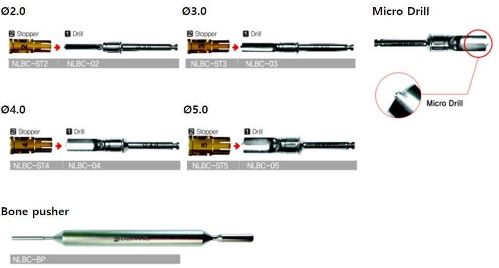 - After drilling, separate the stopper and then push bone inside the stopper out using the bone pusher.